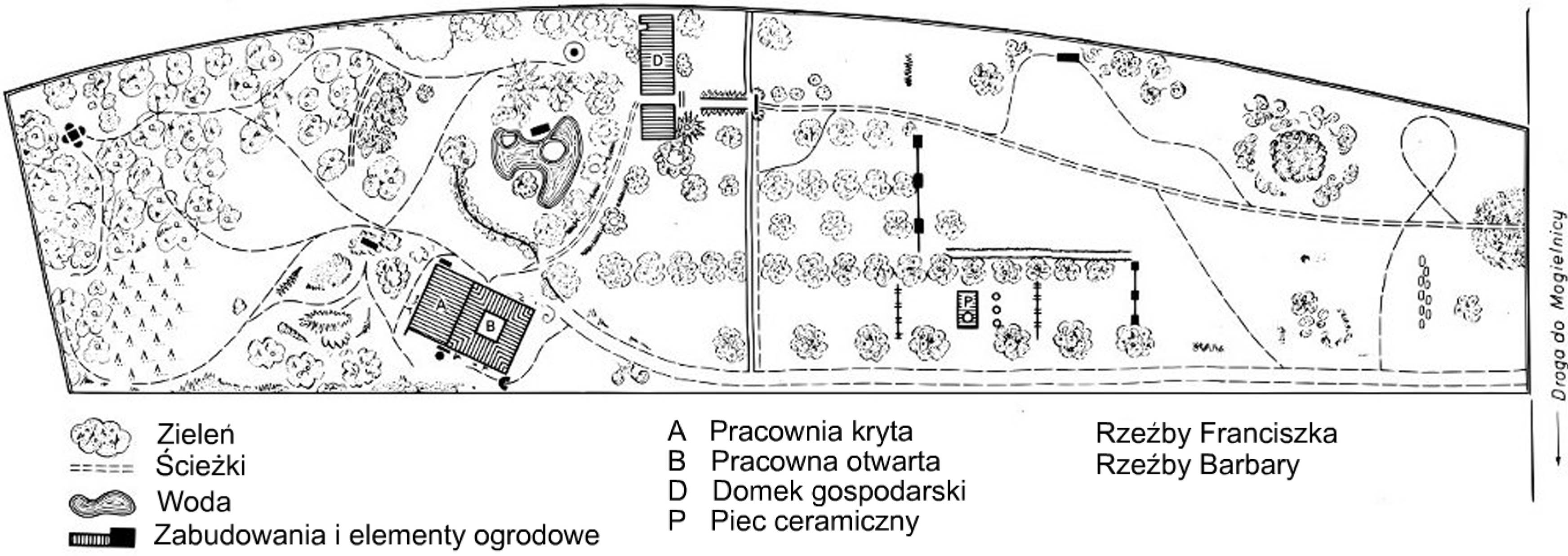 Plan działki z oznaczeniem miejsca ekspozycji rzeźb
